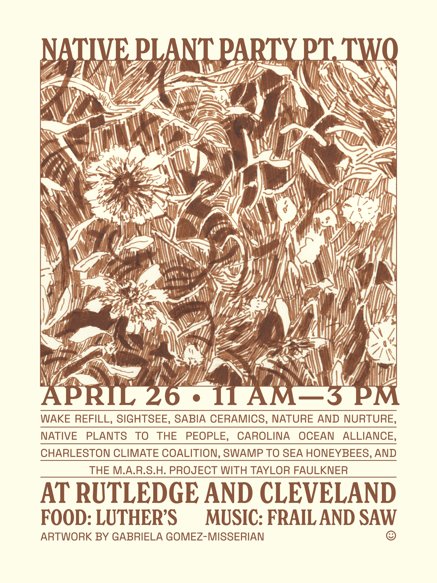 Whether it’s an oyster reef, a native plant garden, or a pot of bee balm on a stoop—we’re restoring bits and pieces of Charleston’s natural heritage one event at a time. We also host a number of educational events with experts in the field of ecological horticulture.