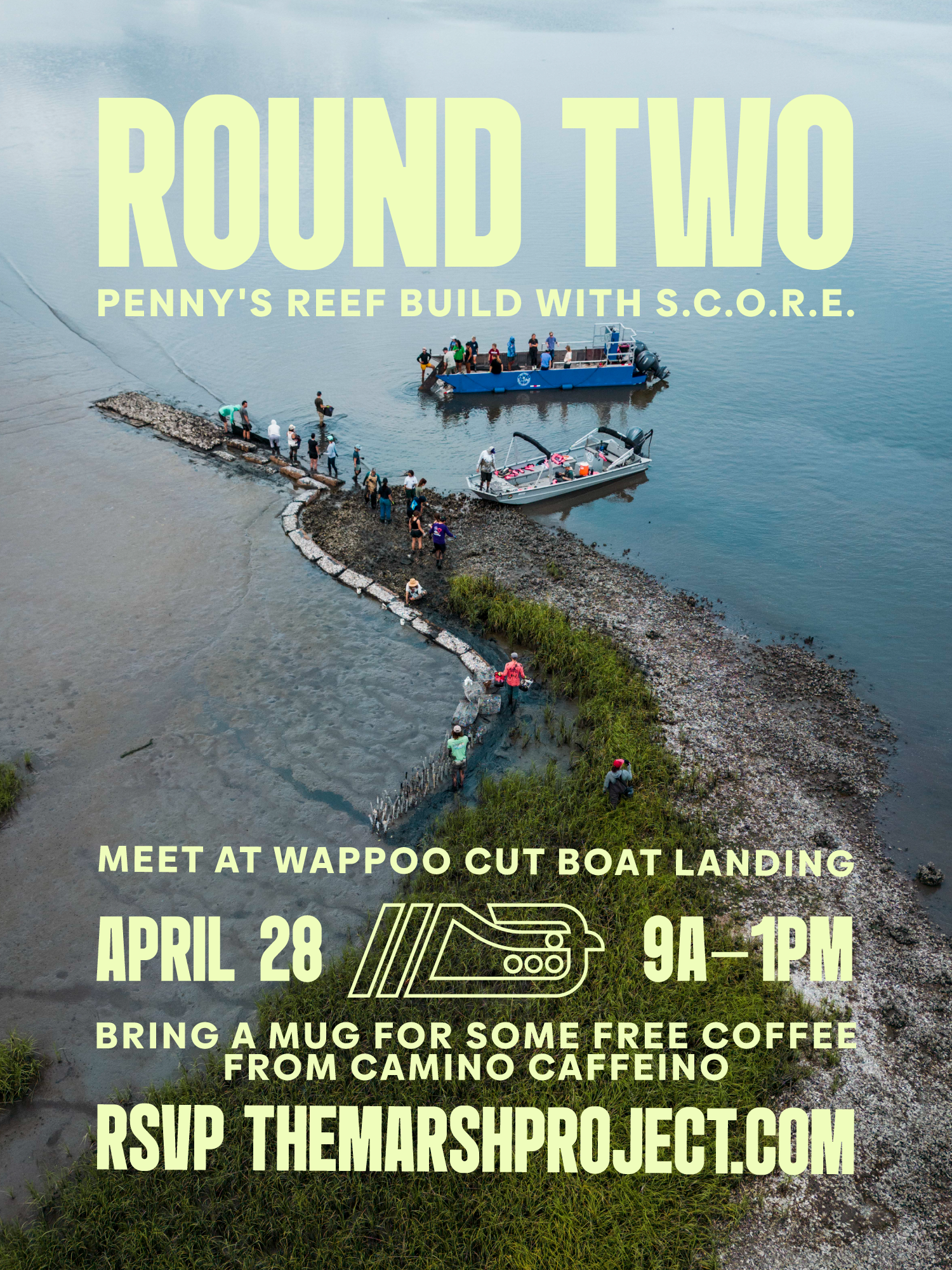 Join us for our second installation on Penny’s Reef out at Halsey Creek. We’ll be installing substrate to continue building up our living shoreline with the wonders of S.C.O.R.E.